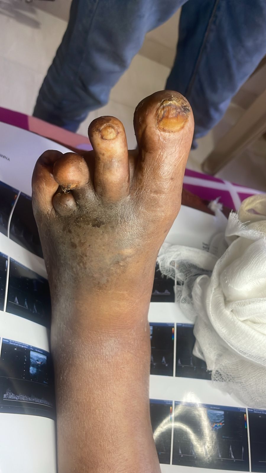 My father Mr B.A. Sivaramakrishnan, age 76, has been a diabetic patient for the last 50 years. He also has heart, liver and kidney issues. In Jan 2024 he had his 4th toe on the left leg amputated as there was a non-healing ulcer. Lack of blood supply prevented this wound from healing for over 3 months and post amputation my father developed gangrene on the toe as well. He even had an angioplasty done in March 2024, on the left leg, but that did not help heal the toe, we tried HBOT but that did not suit my father. The recommendation was to amputate below or above the knee. A diagnosis of osteomyelitis was also given as there was infection in the bone.